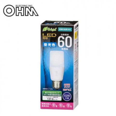 OHM LED電球 T形 E26 60形相当 昼光色 LDT7D-G IS21