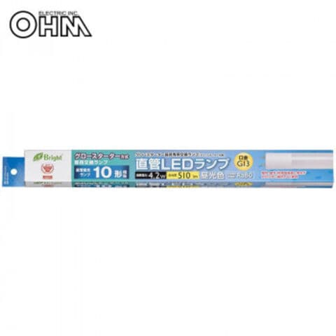 OHM 直管LEDランプ 10形相当 G13 昼光色 グロースターター器具専用 LDF10SS・D/4/5