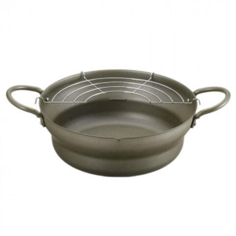 | 揚げアミ付きで、素早い油切りが可能。鉄の保温力で油の温度を一定に保ち、揚げ物がカラッと揚がります。 |