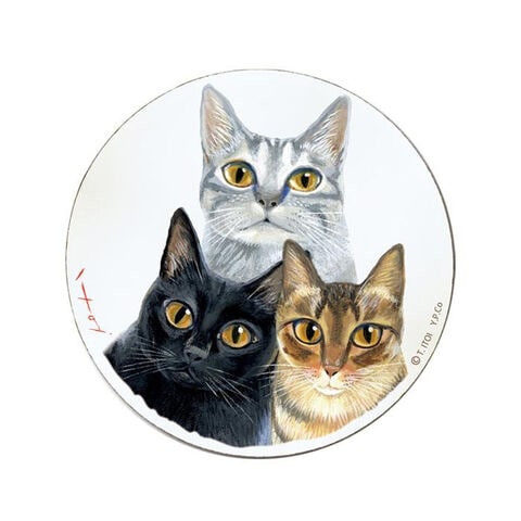 奈良町の男性作家「糸井 忠晴」が描くねこ達が迫力のまんまるアートになりました。目の部分は特殊なクリア加工でキラリと光ります。 |