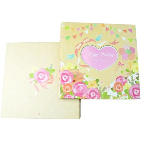 | 表紙はギフトにふさわしい華やかなデザインでフォトフレーム付き。写真のL版がジャストで入るので、好きな写真で表紙を飾ることができます。 |