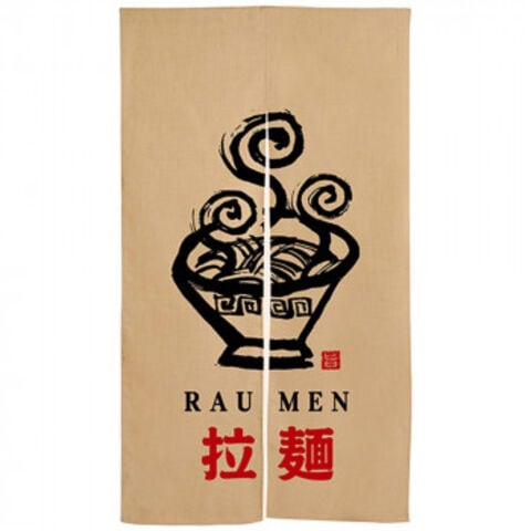 Nエステル麻半間のれん 3574 拉麺 ラーメン柄 赤文字