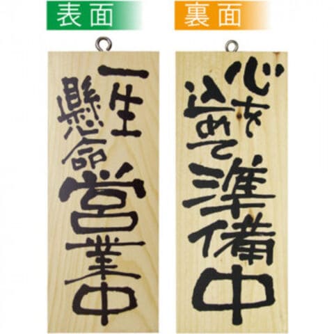 E木製サイン 3952 小 一生懸命営業中/心を込めて準備中