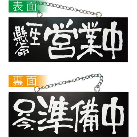 E木製サイン(黒) 3982 中横 一生懸命営業中/只今準備中