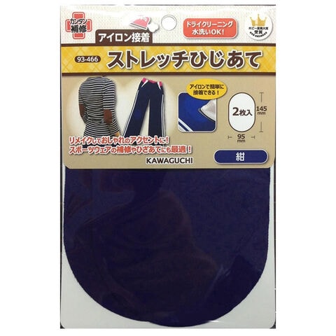 | アイロンで接着できるストレッチタイプです。スポーツウェアの補修やひざあてにも最適。ドライクリーニング・水洗いOK。 |