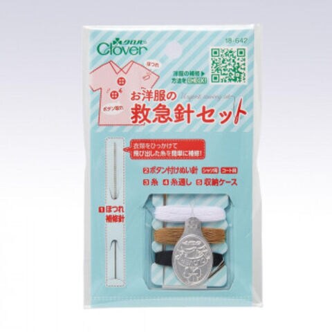 | お洋服のお直しに便利なセットです。商品パッケージのQRコードを読み取って補修方法の動画や写真を見ることができるので、ボタン付けをしたことのない方も安心です。 |