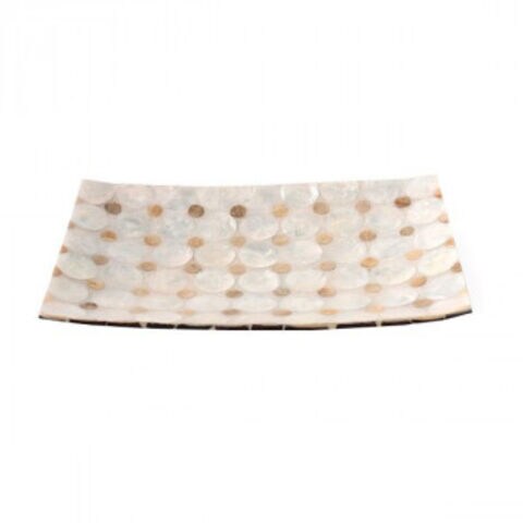 | ココナッツのトレイに光沢のあるシェルを丸く、薄く削りあしらったトレイ。ゴールドのドットシェルがアクセントに。シェルの輝きが綺麗です。 |