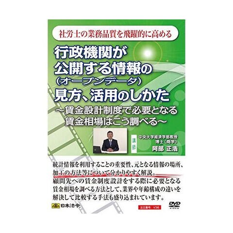 このDVDでは、統計情報を利用することの重要性、元となる情報の場所、加工の方法等について分かりやすく解説しています。顧問先への賃金制度設計をする際に必要となる賃金相場を調べる方法、業界や年齢構成の違いを解決して比較する方法など実践で役に立つ手法・テクニックが盛り込まれています。 |