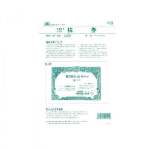 必要事項をご記入いただきお使いいただける株券です。印刷の色は草色です。