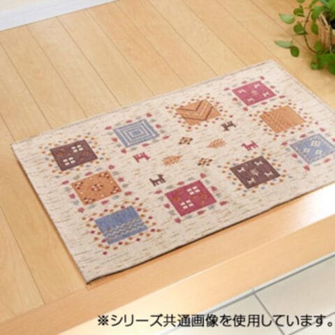 | シンプルなギャベ柄をあしらい、玄関をぱっと明るく演出してくれます。裏面にはすべりにくい加工を施しています。 【お手入れ方法】 液温は30度を限度とし、洗濯機による洗濯ができる。(弱水流・ネット使用) 干し方=日影の吊り干しがよい。 |
