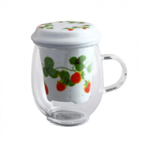 | ガラスのマグカップに陶磁器の茶こしと蓋をセットしました。茶こしは底部が三つ脚になっており、マグカップに茶こしの脚を引っ掛け、熱いお茶の湯切りをすることができます。蓋は裏返すと茶こし受けとしてもご使用いただけます。ギフトにも最適♪ |