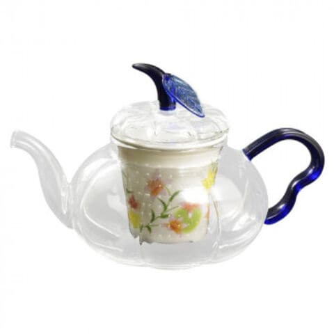 可愛いパンプキン型のガラスのティーポットに有田焼の茶こしがおしゃれ☆日本茶・紅茶・中国茶・ハーブティーなどいろんなお茶にご使用下さい♪
