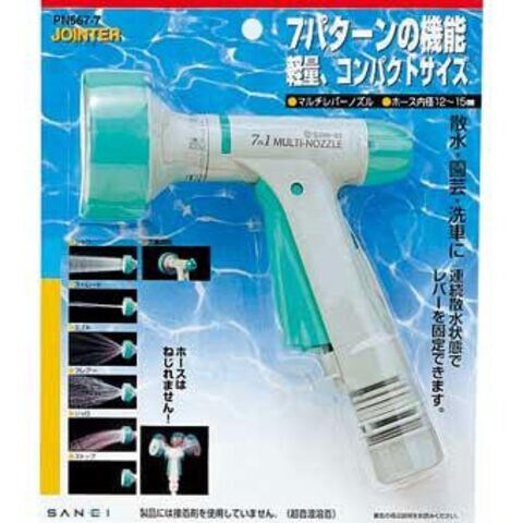シャワ・ストレート・ミスト・フレアー・ジョロ・ストップ・流量調節の7パターンの機能が使用できます。