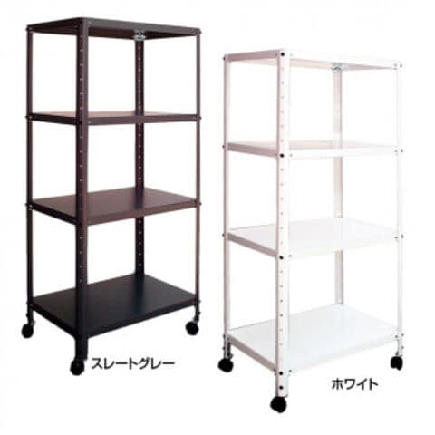 福富士 業務用 収納スチールラック 高さ126 横幅60 奥行40 4段 キャスター付 RLK-644 ホワイト