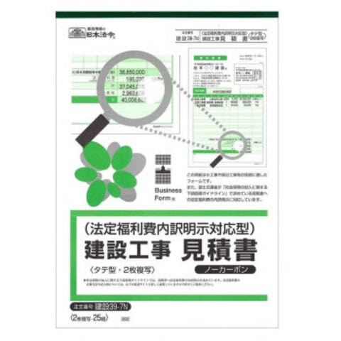 日本法令 建設 39-7N/法定福利費内訳明示対応型建設工事見積書