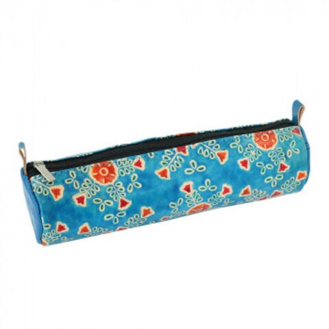 山羊革に型押しでレトロシックなデザインをして、カラフルにペイントしたペンケースです。ハンドペイントならではのムラ感や色味の違いが味わい深いです。
