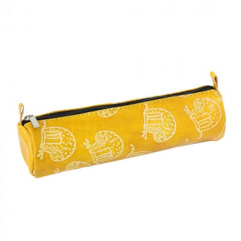 山羊革に型押しでレトロシックなデザインをして、カラフルにペイントしたペンケースです。ハンドペイントならではのムラ感や色味の違いが味わい深いです。