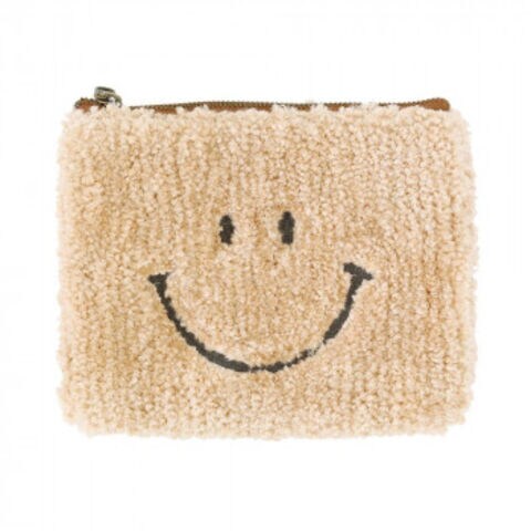 | もこもこボア素材を使用したスマイルのポーチ。ベーシックなカラーなので、可愛くなりすぎません。メイク道具やアクセサリーなどを入れる小物ケースはもちろん、ペンケースにしたり、パスポートケースにしたり、使い方は様々。 |