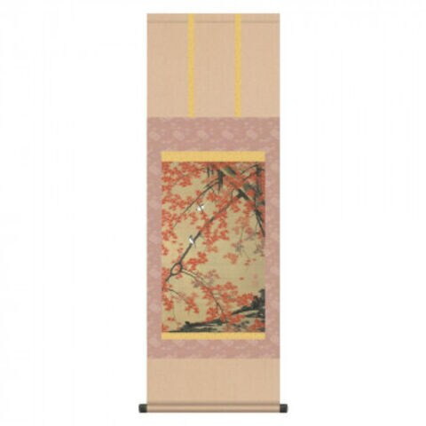 伊藤若冲 尺三掛軸 紅葉小禽図