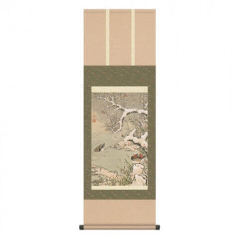 伊藤若冲 尺三掛軸 雪中遊禽図
