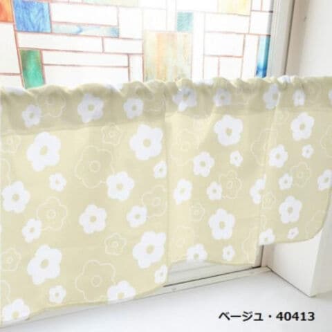 カフェカーテン ベタと線の花 1000×450mm ベージュ・40413
