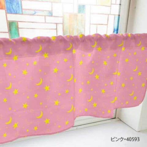 カフェカーテン ベタと線の月と星 1000×450mm ピンク・40593