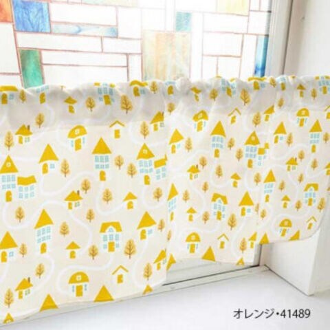 カフェカーテン 家 1000×450mm オレンジ・41489