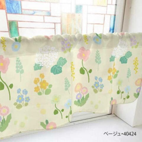 カフェカーテン 野花と紫陽花 800×450mm ベージュ・40424