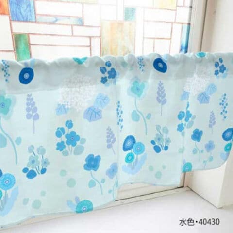 カフェカーテン 野花と紫陽花 800×450mm 水色・40430