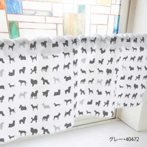 カフェカーテン 犬シルエット 800×450mm グレー・40472