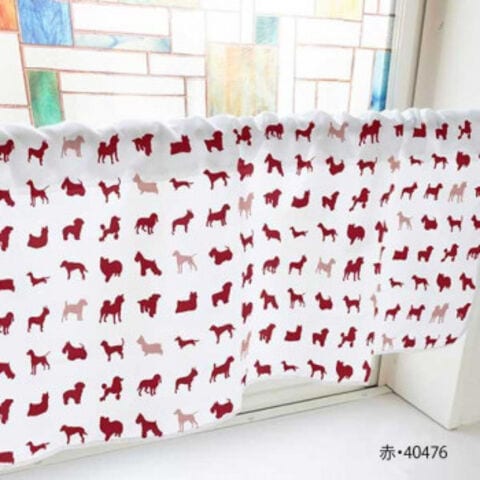 カフェカーテン 犬シルエット 800×450mm 赤・40476