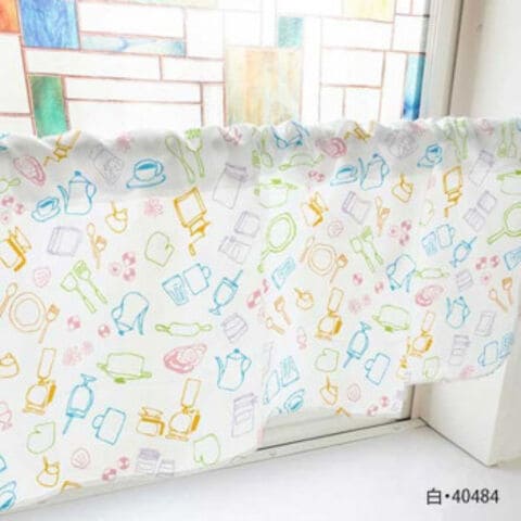 カフェカーテン 食器や焼き菓子 800×450mm 白・40484
