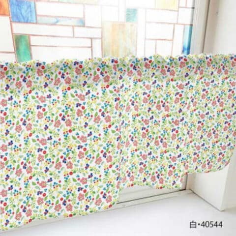 カフェカーテン 植物小柄 800×450mm 白・40544
