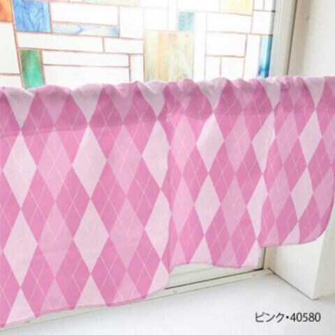 カフェカーテン アーガイルチェック 800×450mm ピンク・40580