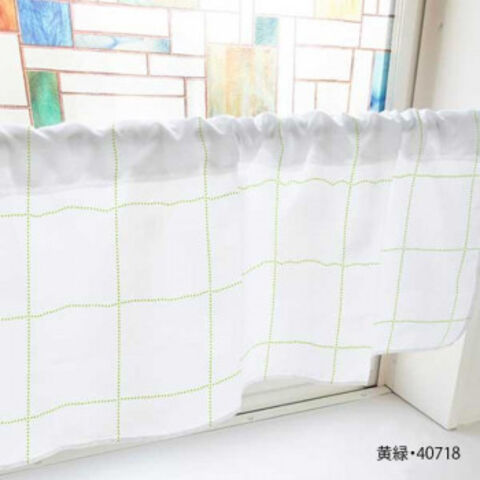 カフェカーテン ドットチェック 800×450mm 黄緑・40718