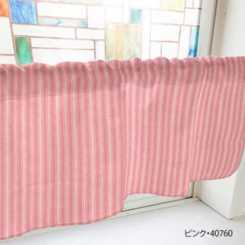 カフェカーテン アイビーストライプ 800×450mm ピンク・40760
