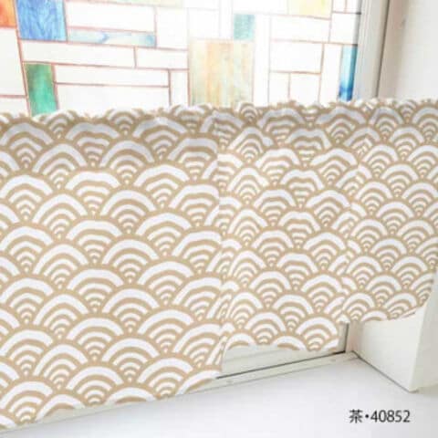 カフェカーテン 青海波 800×450mm 茶・40852