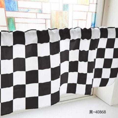 カフェカーテン ブロックチェック 800×450mm 黒・40868