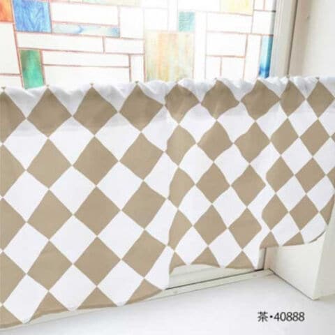 カフェカーテン ハーリキンチェック 800×450mm 茶・40888