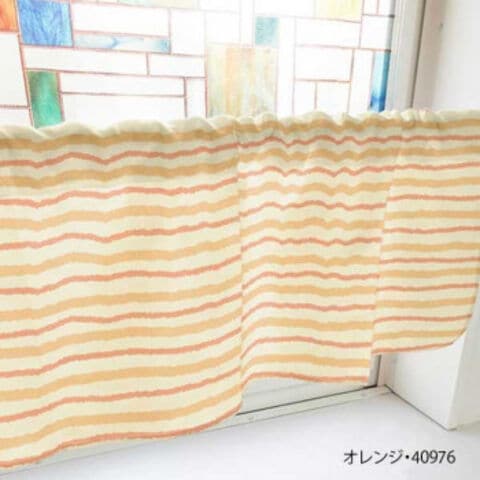 カフェカーテン ラフボーダー 800×450mm オレンジ・40976