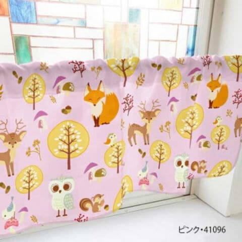 カフェカーテン 秋の森 800×450mm ピンク・41096