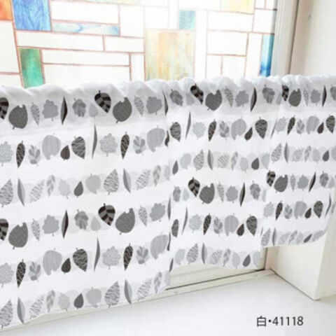 カフェカーテン 色んな形 葉っぱ 800×450mm 白・41118