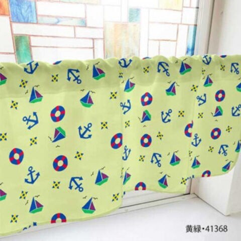 カフェカーテン 錨 800×450mm 黄緑・41368
