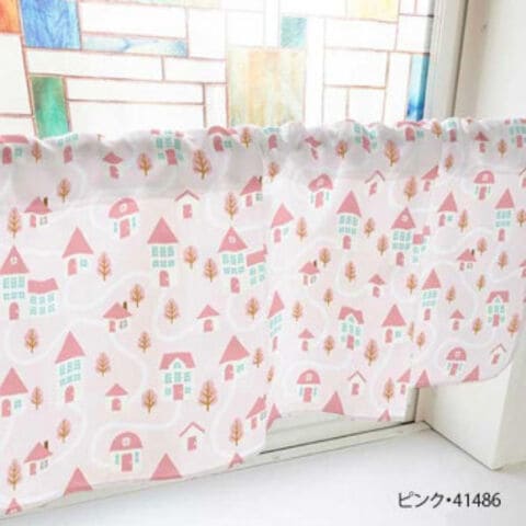 カフェカーテン 家 800×450mm ピンク・41486