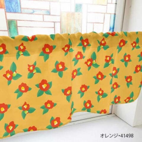 カフェカーテン 椿 800×450mm オレンジ・41498