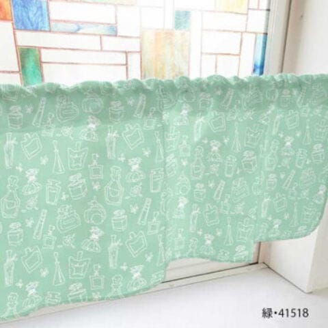 カフェカーテン 香水瓶 800×450mm 緑・41518