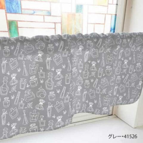 カフェカーテン 香水瓶 800×450mm グレー・41526
