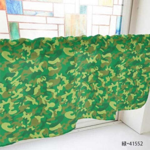 迷彩柄がパっと目を引く印象的なカフェカーテンです。