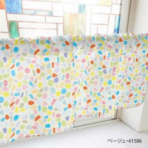 | 様々な色や形のタイルがたくさん描かれているおしゃれなカフェカーテンです。 ※北海道・沖縄・離島は別途送料をいただきます。 ※受注生産品のため、ご注文後のキャンセルはお受けできません。 |