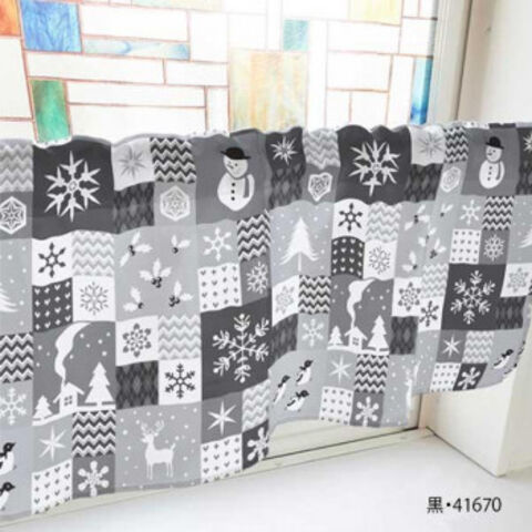 カフェカーテン クリスマス柄 パッチワーク 800×450mm 黒・41670